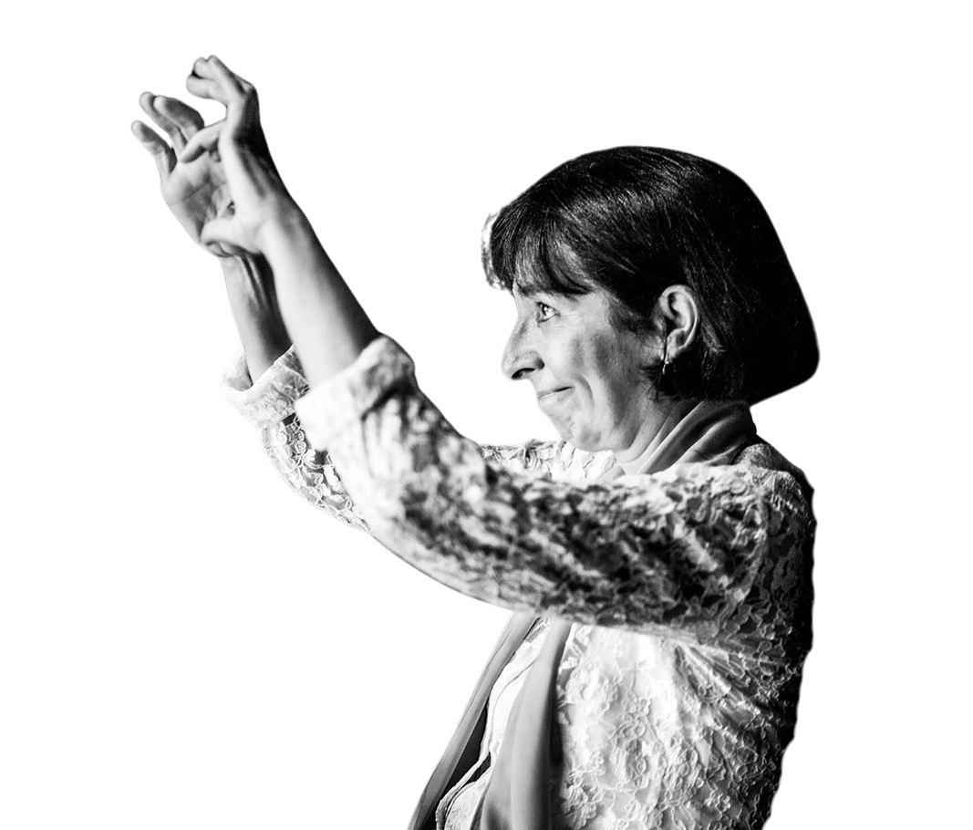 A l’écoute du moindre son, elle conduit à la justesse. A l’écoute de chacun, elle n’a d’autre souci que le bon fonctionnement du groupe.
